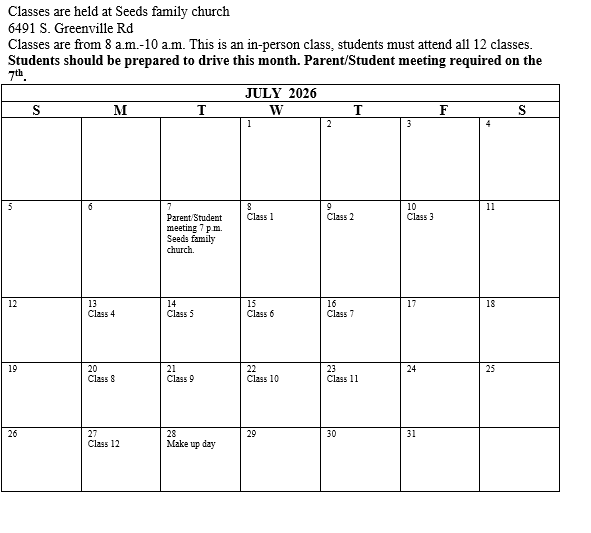 Preparation: Students should be ready to begin driving during the course